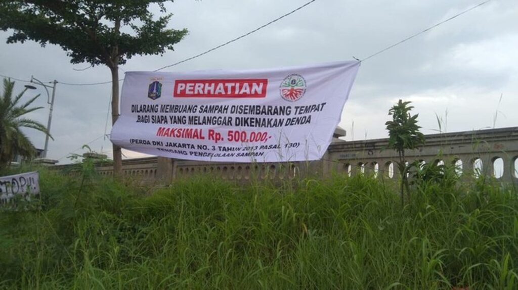 Selain pengawasan fisik dan teknologi, DLH DKI juga memasang spanduk larangan pembuangan sampah di sejumlah titik rawan. Spanduk tersebut secara spesifik merujuk pada Pasal 130 Peraturan Daerah (Perda) Nomor 3 Tahun 2013 tentang Pengelolaan Sampah.