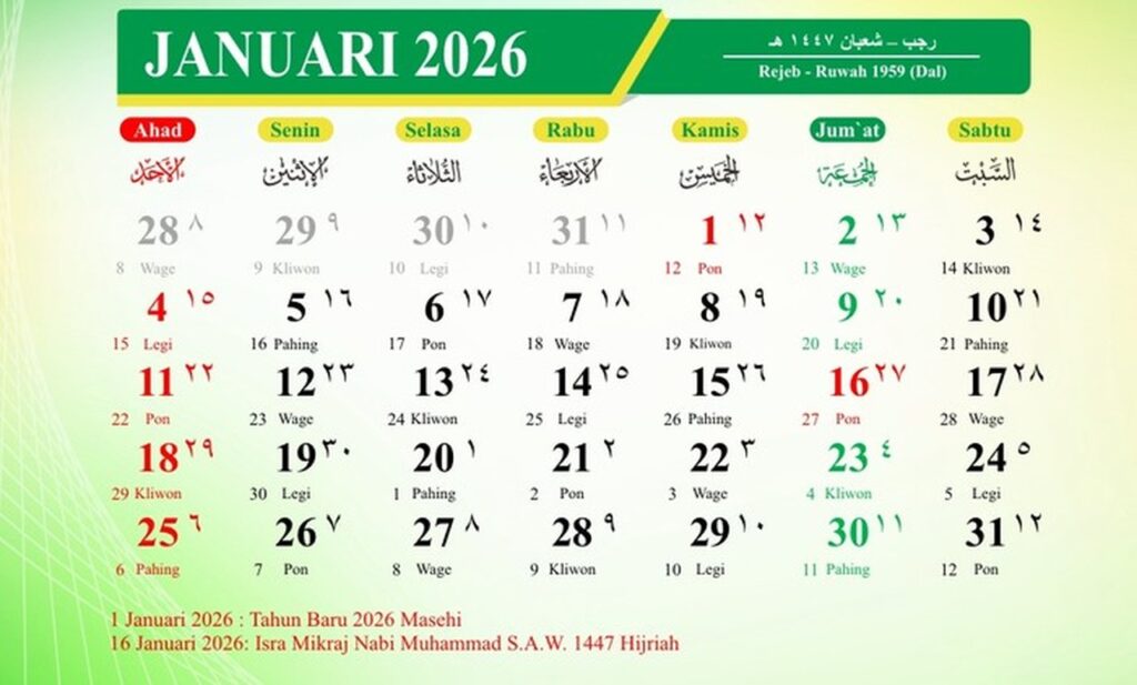 - Jumat, 16 Januari 2026: Isra Mikraj Nabi Muhammad SAW