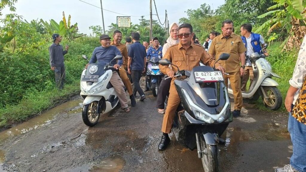 Gubernur Banten, Andra Soni, secara langsung meninjau kondisi salah satu jalan desa yang menjadi prioritas perbaikan di Desa Palasari, Kecamatan Legok, Kabupaten Tangerang, pada Senin (19/1/2026). Dalam kunjungannya, Gubernur Andra mengendarai sepeda motor melintasi jalan aspal yang dilaporkan rusak parah, dipenuhi lubang besar dan genangan air.